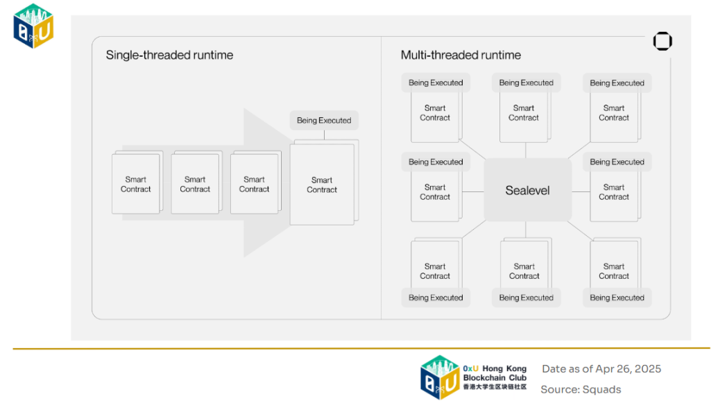 在执行层,Solana 的 Sealevel 并行运行时更进一步放大了系统效能,允许大量非冲突交易同时处理,充分发挥多核 CPU 与 GPU 加速能力。举例来说,只要两笔交易涉及的帐户彼此独立(例如,一笔是交易 SOL,另一笔是借贷 USDC),就可以同时完成,而不是像以太坊那样每次只能排队等一笔交易执行。对于多策略并行执行、频繁调整交易参数的对冲基金而言,这意味着极低延迟与高度动态调整的能力,显着提升资本效率与策略灵活性。