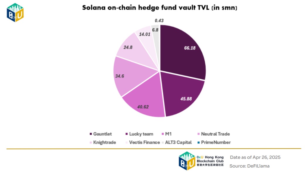截至目前,Solana 链上对冲基金赛道的 TVL 约为 2.2 亿美元,与其他主流 DeFi 赛道相比,规模相对有限。笔者认为,这一现象主要源于该领域尚未被广泛教育与普及,多数散户用户对 DeFi 的理解仍停留在流動性质押 / 再质押、借贷、以及永续合约交易等较为常见的操作。