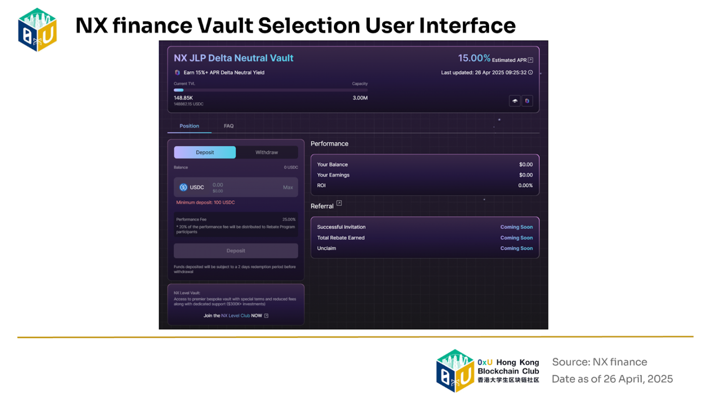 NX Finance:提供最高 7 倍杠杆,同样以杠杆方式放大 JLP 的收益,同时设有 NX Points 计划,允许用户累积空投积分以预期未来代币奖励。
