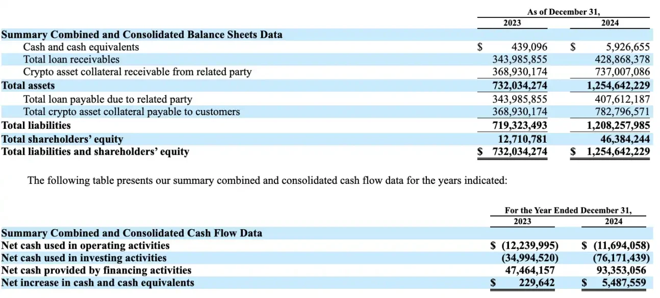 在负债端,总负债由 7.19 亿美元上升至 12.08 亿美元,主要由平台客户币本位借款和抵押义务构成。这一增长与资产端基本匹配,未出现明显的流动性错配风险。与此同时,公司股东权益则从 1,271 万美元提升至 4,638 万美元,反映出在业务增长和持续盈利推动下,公司净资产稳步积累,为后续融资与资本运作打下坚实基础。