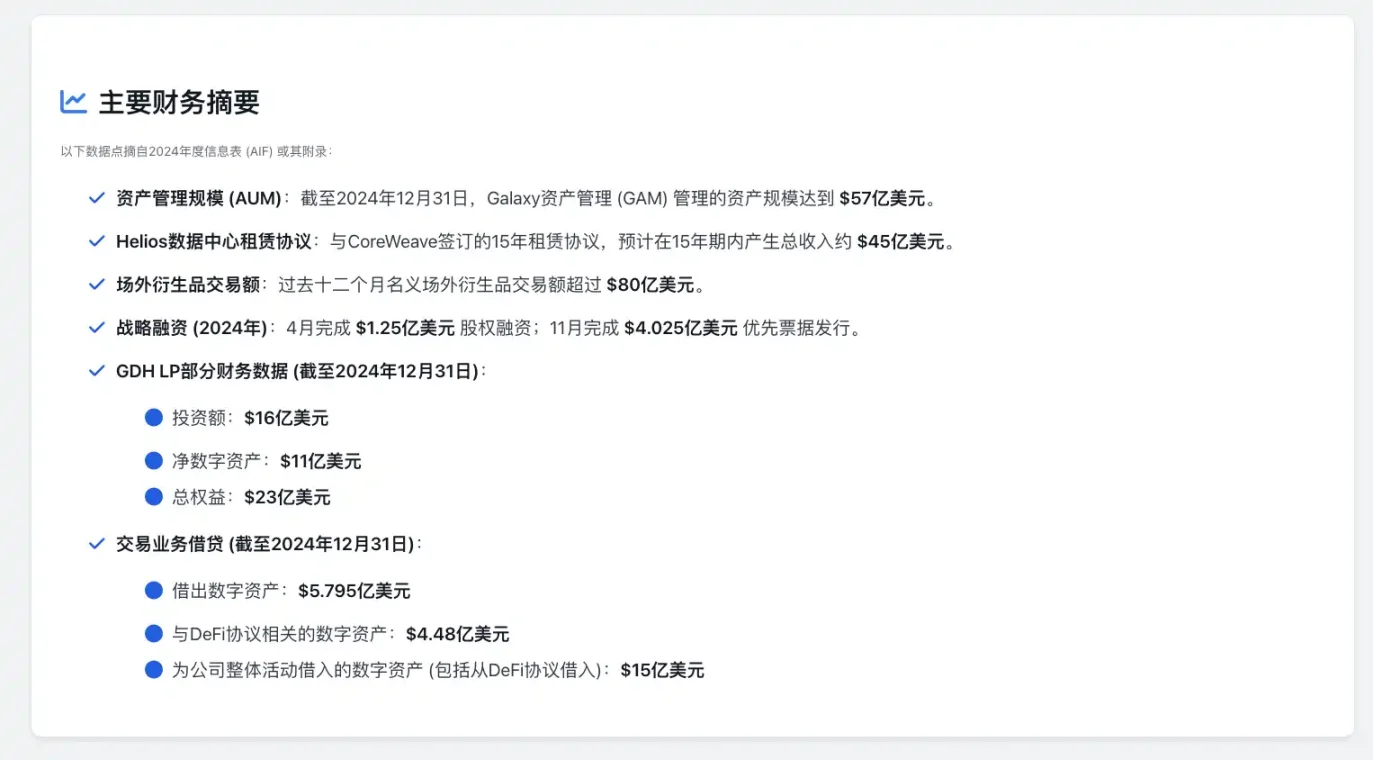 不仅如此,Galaxy 还在年内启动了多资产对冲基金产品 Galaxy Absolute Return Fund,这是一支专为机构投资者设计、强调无币敞口的基金组合。在交易与衍生品业务方面,年报中未披露详细的年度交易收入数据,但 Galaxy 强调了其在产品多样性、机构服务深度与合规能力方面的持续投入,引入了多个新币种与杠杆交易产品,不断丰富衍生品平台的交易工具。