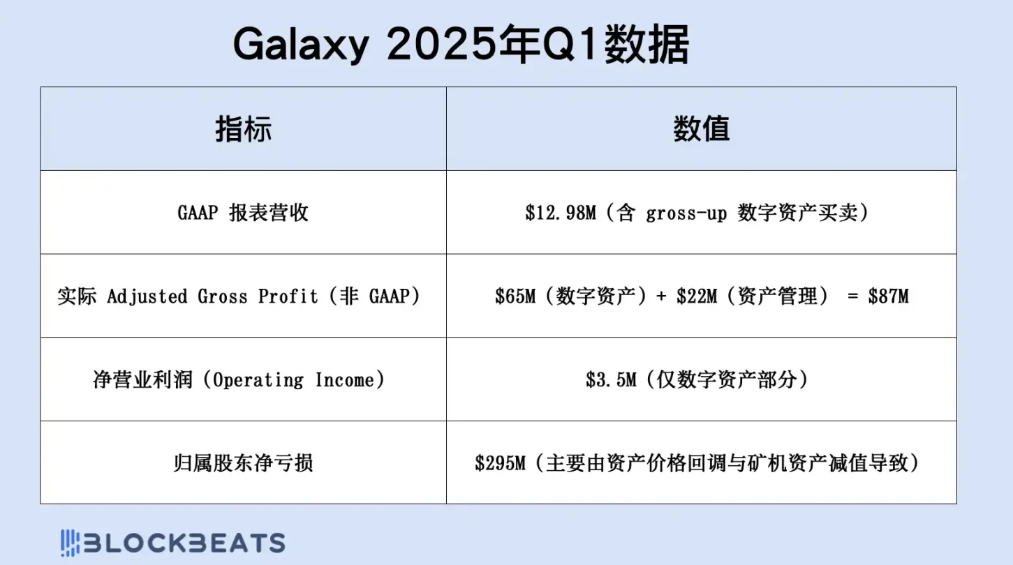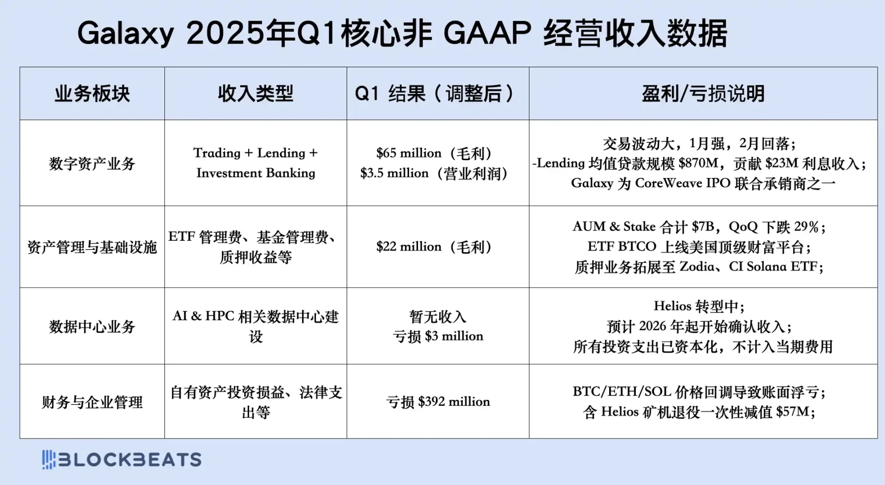 为了更准确地呈现经营表现,Galaxy 同步披露了非 GAAP 指标——Adjusted Gross Profit,作为自身内部管理和对外沟通的主要参考口径。