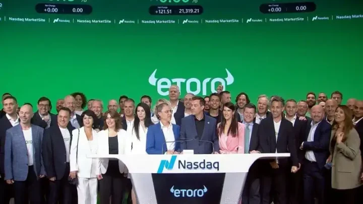 eToro 于 2025 年 5 月 14 日完成 IPO 定价,5 月 15 日正式在纳斯达克上市(股票代码 ETOR),以每股 52 美元的价格出售了 600 万股股票,从投资者那里筹集了约 3.12 亿美元。此次上市对公司的估值为 42 亿美元。。该平台在 2007 年成立于以色列,核心业务是提供加密货币、股票、ETF 等多资产社交化交易服务,定位 Robinhood 的竞争对手。