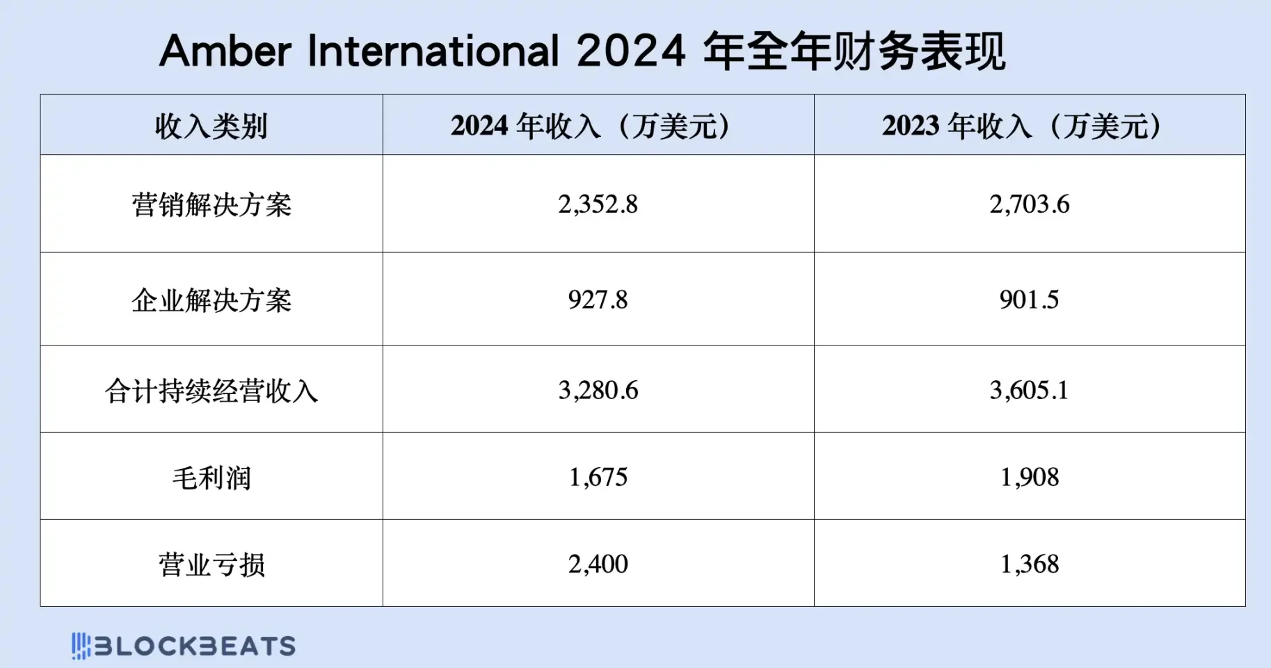 2024 年,Amber International 依然处于大规模战略转型的关键过渡期。从财务表现来看,虽然整体仍在亏损状态中,但多个核心指标的改善迹象开始显现,尤其是新业务板块的增长潜力正在初步释放。