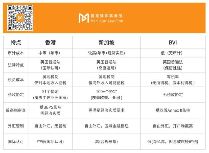 控股层:BVI 公司(保密性)+ 香港公司(融资与供应链统筹)