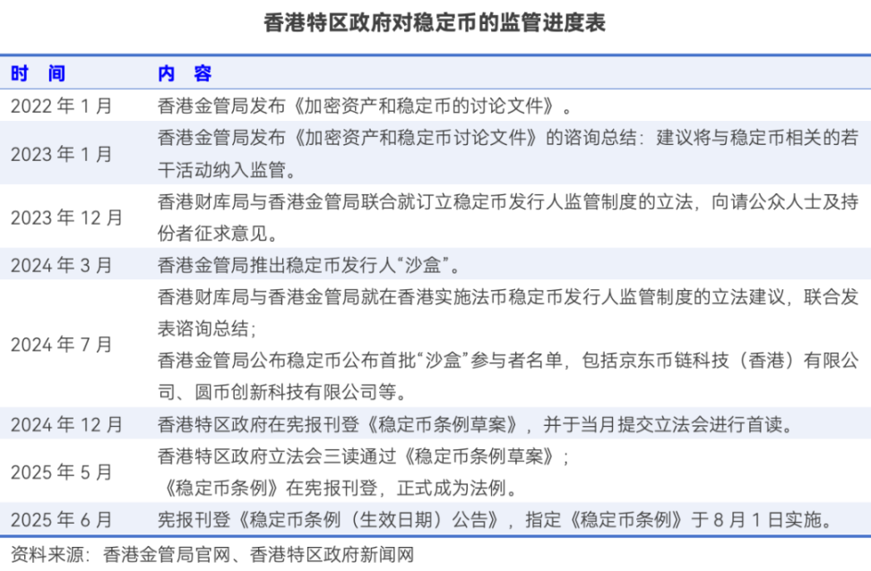 香港特区《稳定币条例》将于 2025 年 8 月 1 日生效,设立发牌制度监管稳定币活动。《条例》要求发行稳定币需申请牌照,且仅持牌机构可在香港销售法币稳定币给零售投资者。《条例》还规定已缴股本不少于 2500 万港元等高标准,中小玩家面临挑战。内地企业无法直接参与稳定币发行或交易,但可通过香港合规通路间接参与。预计部分银行将积极参与稳定币相关业务。