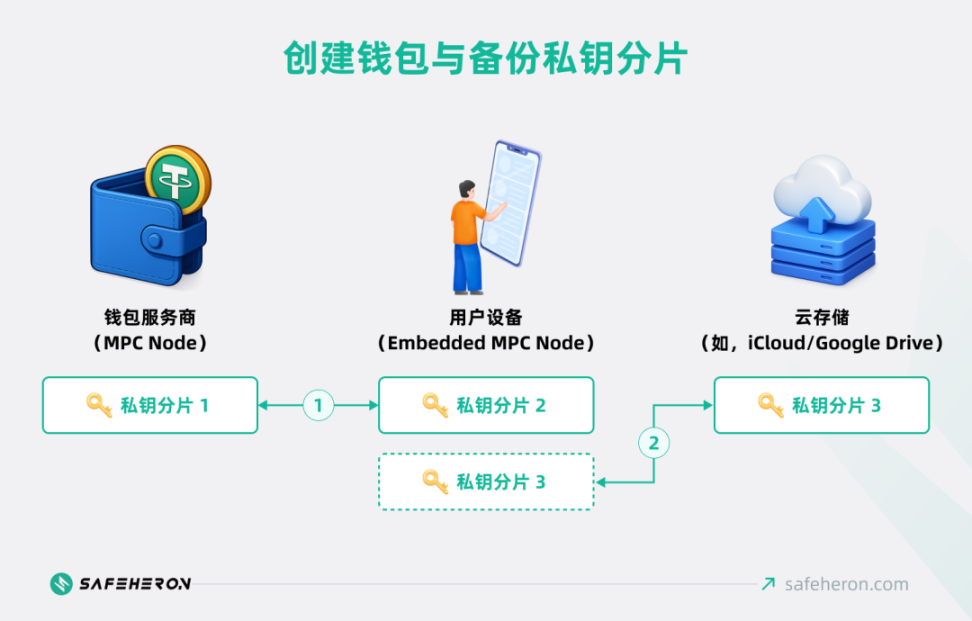 这种精心设计的分布式架构确保了即使在设备丢失或需要更换的情况下,用户仍可通过云端备份的私钥分片 3 轻松恢复钱包访问权限,无需重新创建钱包。