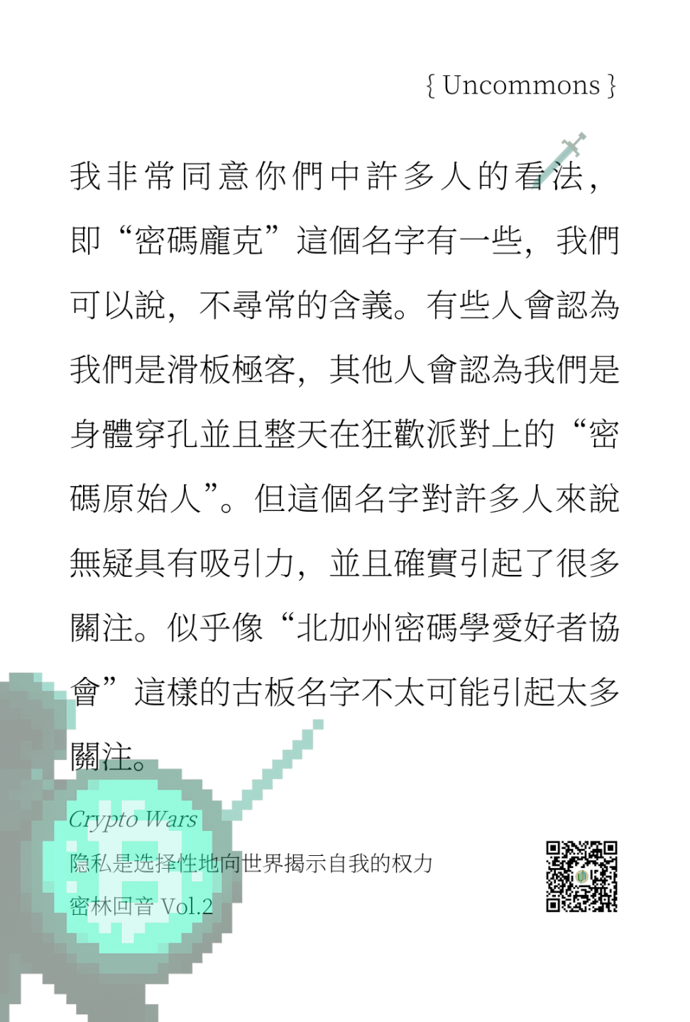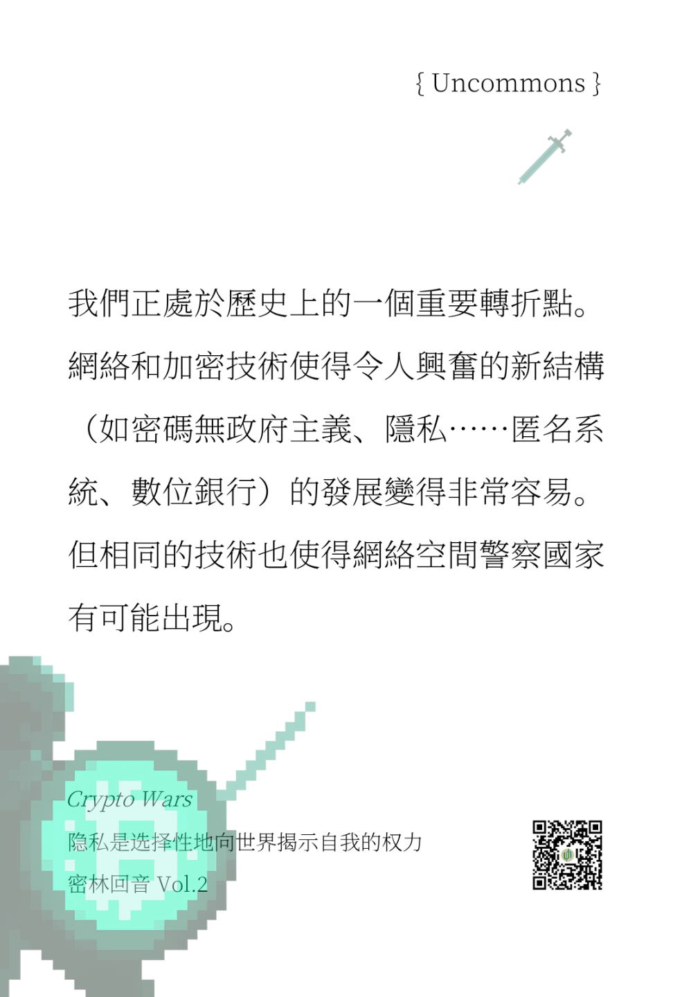 「密林回音」Echo of Crypto 是 Uncommons 的书摘与评论专栏,旨在从那些书籍、文章中找到加密思想的最初声音,挖掘被记录、被遗忘的历史和思想,从文本出发点亮当前。