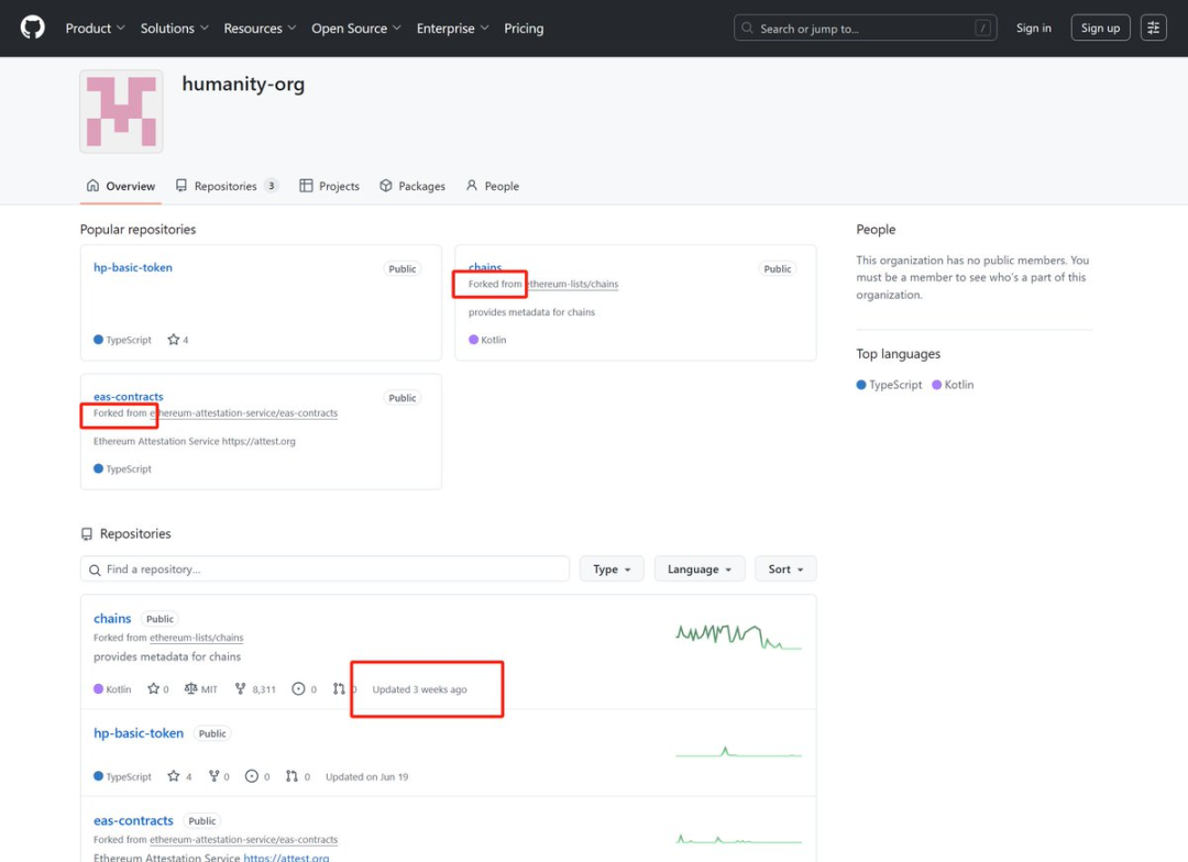 第二,最近一次代码提交是 3 周前。按理说,和 particle 相比,humanity 是一个新项目啊,居然最近一次代码提交在 3 周前……