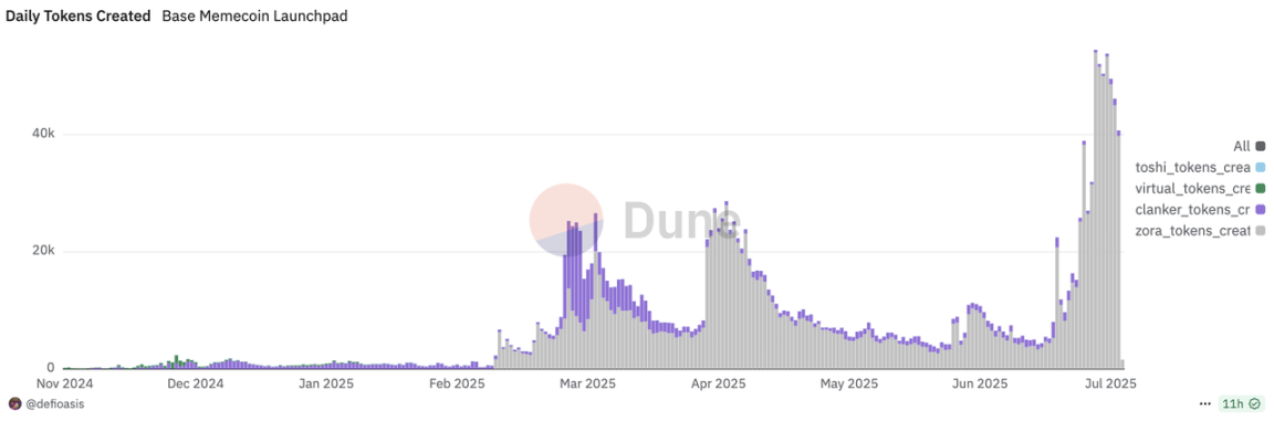 Zora Coins 是 Base APP 作为分销渠道的重要例子。在 Base APP 的深度集成后,Zora Coins 成为 Base 网络乃至全网最大的 Launchpad,并助力 Base 超过 Solana 成为每日代币创建数量最多的网络。在过去一周,Zora Coins 每日代币创建数达到 4-5 万,几乎是 Solana 最大发射器 LetsBONK 的两倍。