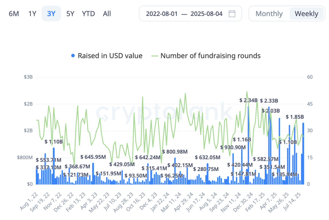 过去一周,一级市场投融资从数据上看较为活跃,共完成 28 笔,总额约 18.5 亿美元,除了财库类的融资,本周的一级市场热点依然集中在稳定币、RWA、AI 相关概念上。