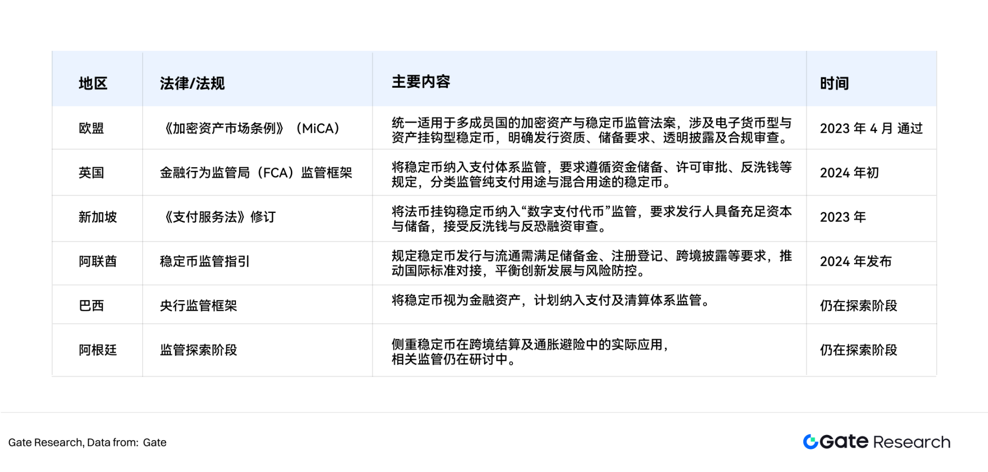 除美国与香港外,其他主要经济体亦在积极推进稳定币相关监管框架,整体呈现审慎趋严、逐步成型的态势。
