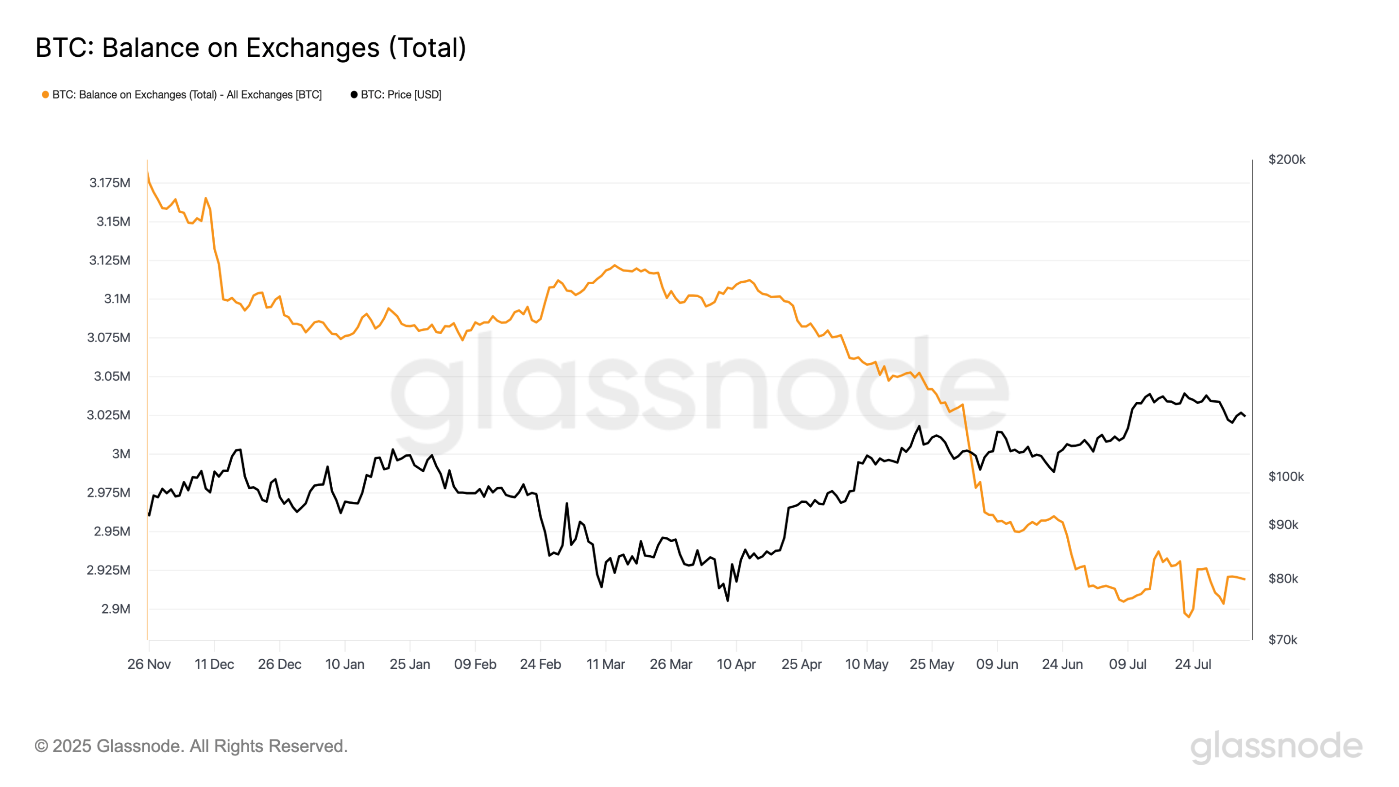 当前交易所 BTC 余额为 291.9 万枚,24 小时内实现超 10 亿美元利润,其中 3.58 亿美元来自持有 7–10 年的长期投资者。