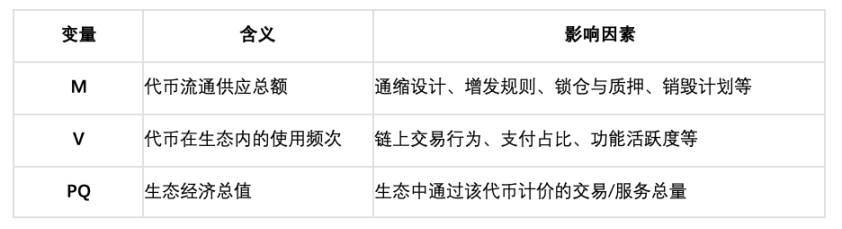 任何影响代币价值的变量(如用户数、交易量、销毁机制等),最终都通过对 PQ 或 M × V 的影响作用于代币价格。
