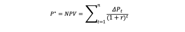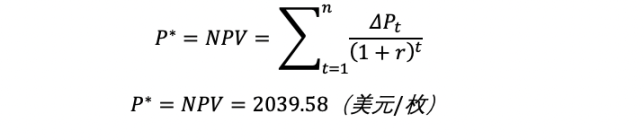 使用 10% 的贴现率,将每年价值增量 ΔPt 折现,得到所有未来“货币增值”的现值总和: