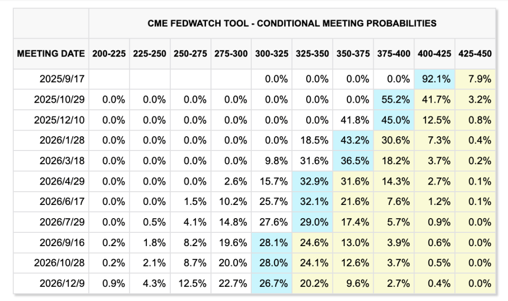 尽管降息预期有所反复,但市场定价仍显示 9 月美联储启动今年首轮 25bp 降息的概率超过 92%,多数交易员预期年内将有两次降息。本周即将召开的 Jackson Hole 全球央行年会成为关键观察点,鲍威尔的讲话或将成为市场判断降息时点与力度的核心参考。而在降息预期已推动美股上涨的背景下,任何鹰派信号都可能引发风险资产再度剧烈波动。