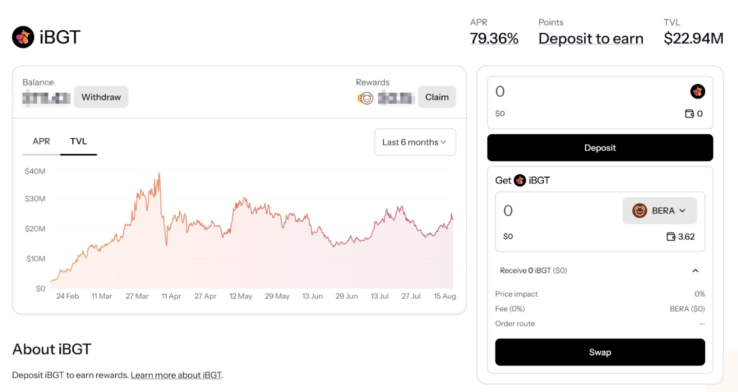 在第二阶段,用户质押 $iBGT,赚取委托 $BGT 带来的 Boost 委托收益。