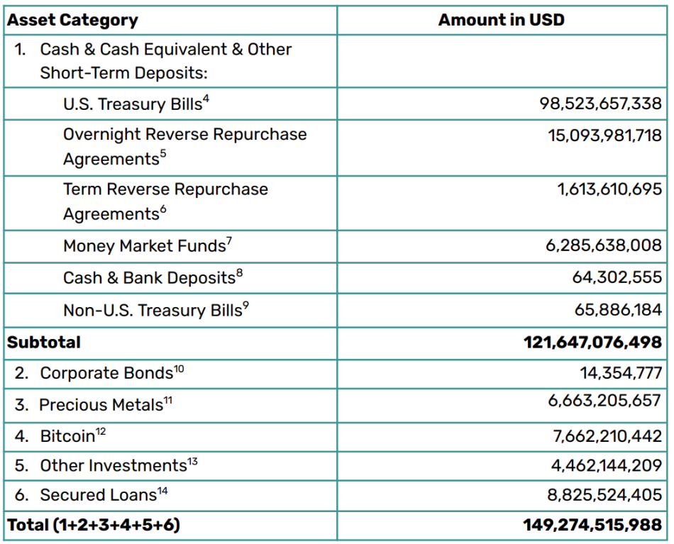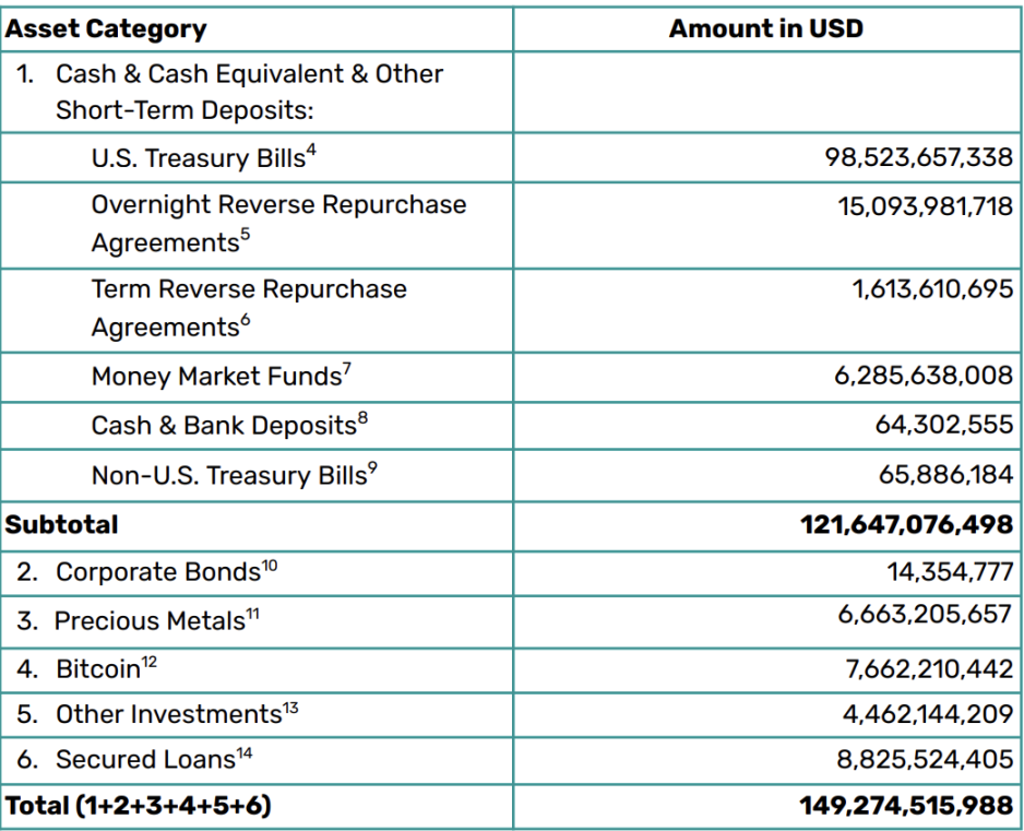 Tether 2025 年 Q1 储备资产构成,源:BDO 审计报告