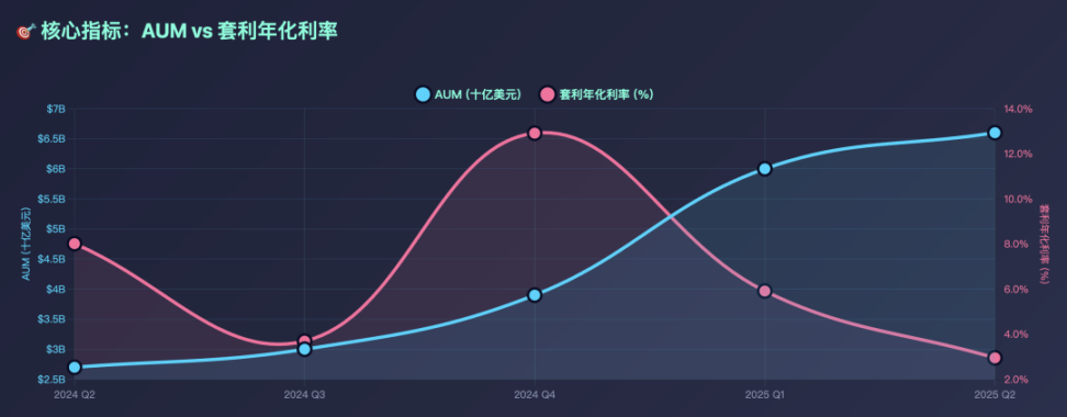 收益模式核心逻辑:AUM(用户在协议智能合约中存入的资产的美元价值) × 套利年化利率