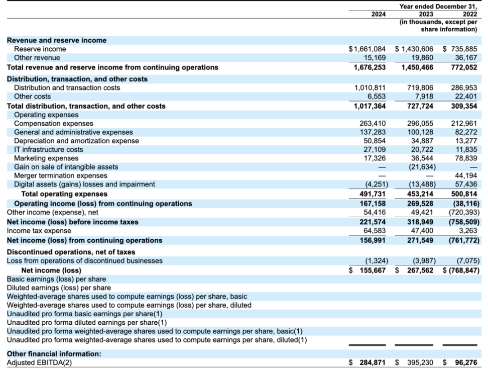 与 Coinbase 的合作使大部分利息收益以“用户奖励”形式分配给持币用户,此安排被视作营销费用处理;