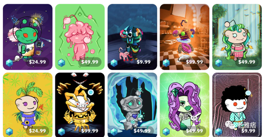 所有NFT都有固定的价格,可以通过美元等法定货币购买。这些NFT头像的标价分别为9.99美元、24.99美元、49.99美元、74.99美元或99.99美元。