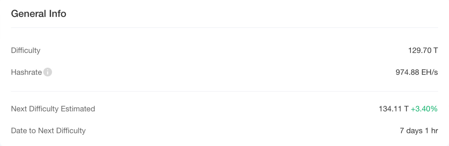根据 CloverPool 数据,截至 2025 年 8 月 29 日,比特币全网算力达到 974.88 EH/s,挖矿难度为 129.70 T。预计下一次难度调整将在 2025 年 9 月 5 日进行,预估将上调约 3.40%,调整后难度预计为 134.11 T。这一趋势表明,全网算力正在持续攀升,矿工之间的竞争加剧,算力增长速度超过区块产出效率的自然增幅,意味着矿工需要投入更多算力与能源来维持同等的比特币产出。在这种背景下,只有能效比(J/TH)更优的矿机,或电力成本处于低位的矿工,才能在激烈的竞争中保持盈利空间。