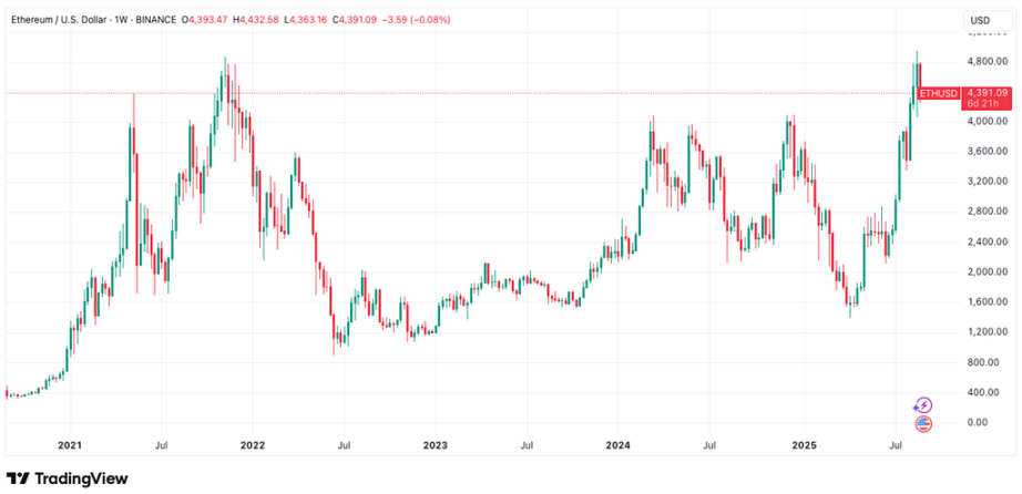 After weeks of rallies the price of Ethereum is entering into a periodical adjustment, dropping below $4,400 level and waiting for further gaining buying power to readjust. For Bitcoin, it has seen a consecutive third week of loss, currently below the $110k level.