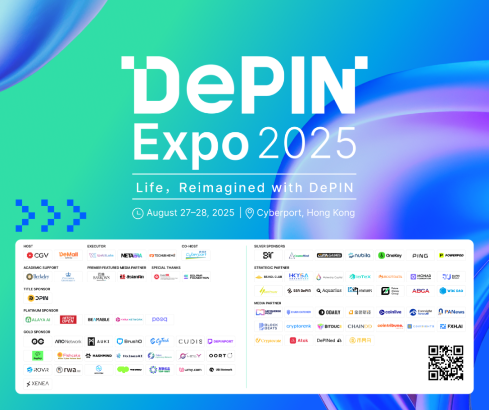 2025 年 8 月 27 日至 28 日,由 CGV 与 DeMall 共同发起,Web3Labs、MetaEra 与 Techub News 承办,Cyberport 协办的 DePIN Expo 2025 在香港数码港成功举行。作为全球首个以去中心化物理基础设施网络(DePIN)为主题的行业旗舰盛会,本次活动以“Life, Reimagined with DePIN”为主题,汇聚来自全球的行业领袖、学者、投资者及开发者,共同探讨 DePIN 技术如何重塑现实世界的基础设施与经济模式。