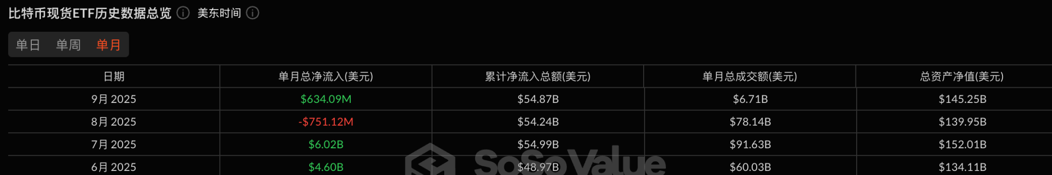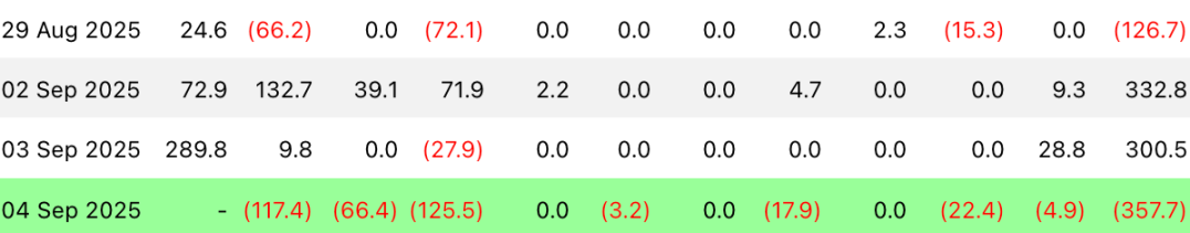 整体来看,前两日资金持续流入,反映出市场对比特币的配置需求依旧强劲。但在 9 月 4 日出现显著流出,说明部分资金选择获利了结,市场情绪短线趋于谨慎。
