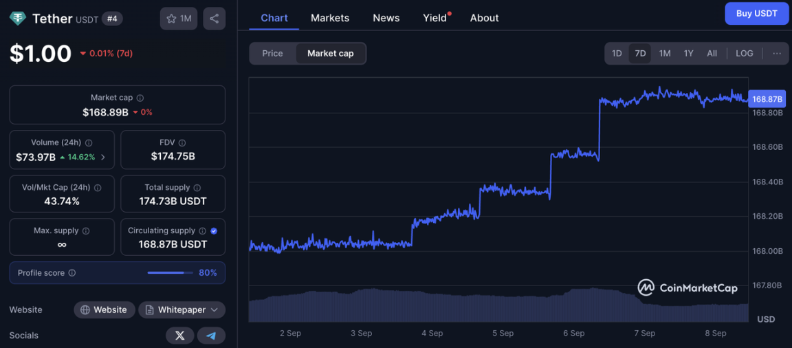 稳定币保持持续增长势头,全网稳定币市值已逼近 3,000 亿美元。在过去一周,USDT 供应量保持阶梯式增长,达 8.64 亿美元;USDC 增长 9.67 亿美元;新晋百亿兼收益型稳定币 USDe 增长 4.19 亿美元。