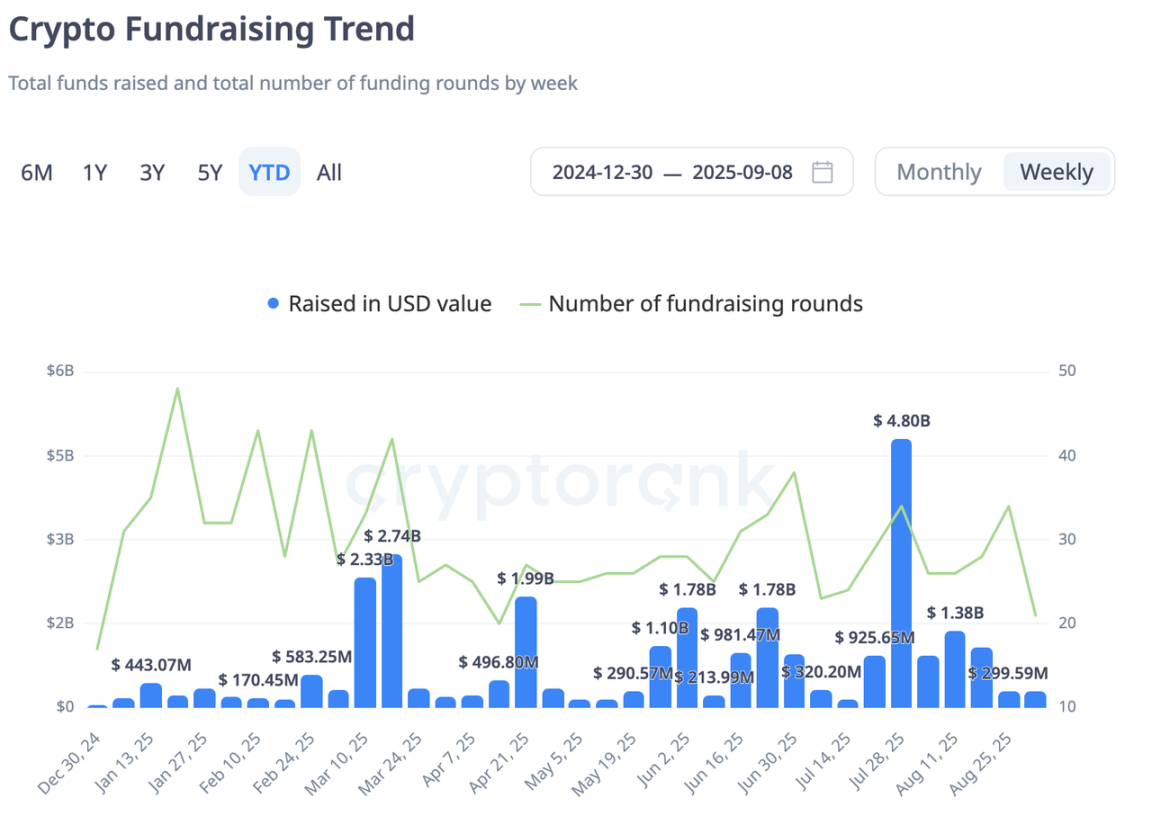 上周,加密市场一级融资情况持续低迷,仅为 2.92 亿美元,主要领域仍然集中在 RWA,其中 Paradigm 和 Polychain 两个头部 VC 均宣布了一个新的 RWA 融资项目。