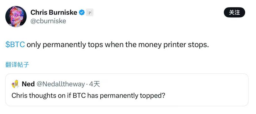 9 月 7 日消息,前 Ark Invest 加密负责人、现 Placeholder VC 合伙人 Chris Burniske 在 X 平台发文表示,只有当印钞机停止运转时,比特币才会真正见顶。市场周期内的波动是短期现象,长期趋势才是必然规律。