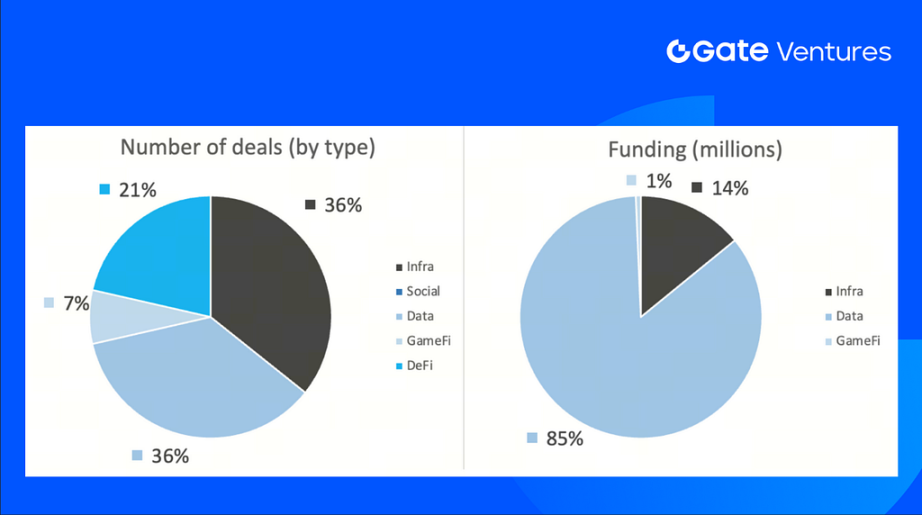 The number of deals closed in the previous week was 14, with Infra having 5 deals, representing 36% for each sector of the total number of deals. Meanwhile, Data had 5 (36%), Gamefi had 1(7%) and DeFi had 3 (21%) deals.