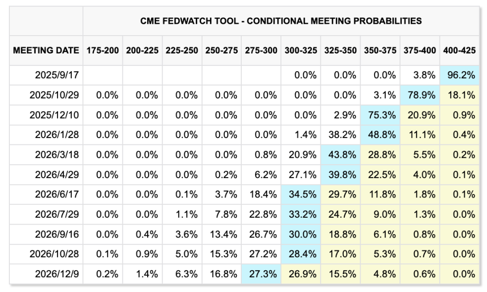路透社对 107 位美经济学家的调查显示,几乎全体预计美联储将在 9 月 17 日实施 25 个基点降息,多数预测明年一季度将继续降息。市场已将降息预期完全计入价格中,并预计年底前降息累计将达到三次,为 2025 年的降息节奏定下基调。调查中值表明美联储明年还将再降息 75 基点,使联邦基金利率降至 3.00%-3.25%。
