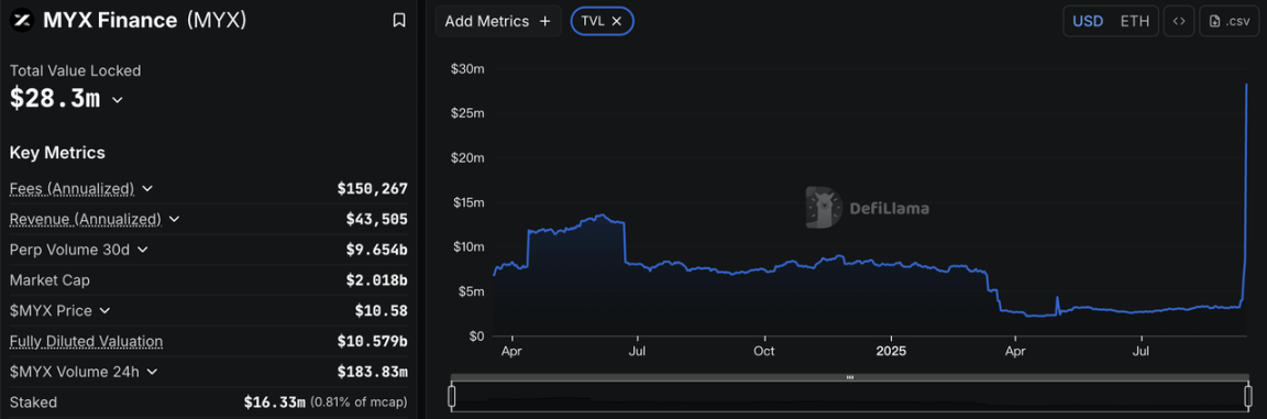 数据来源:https://defillama.com/protocol/myx-finance