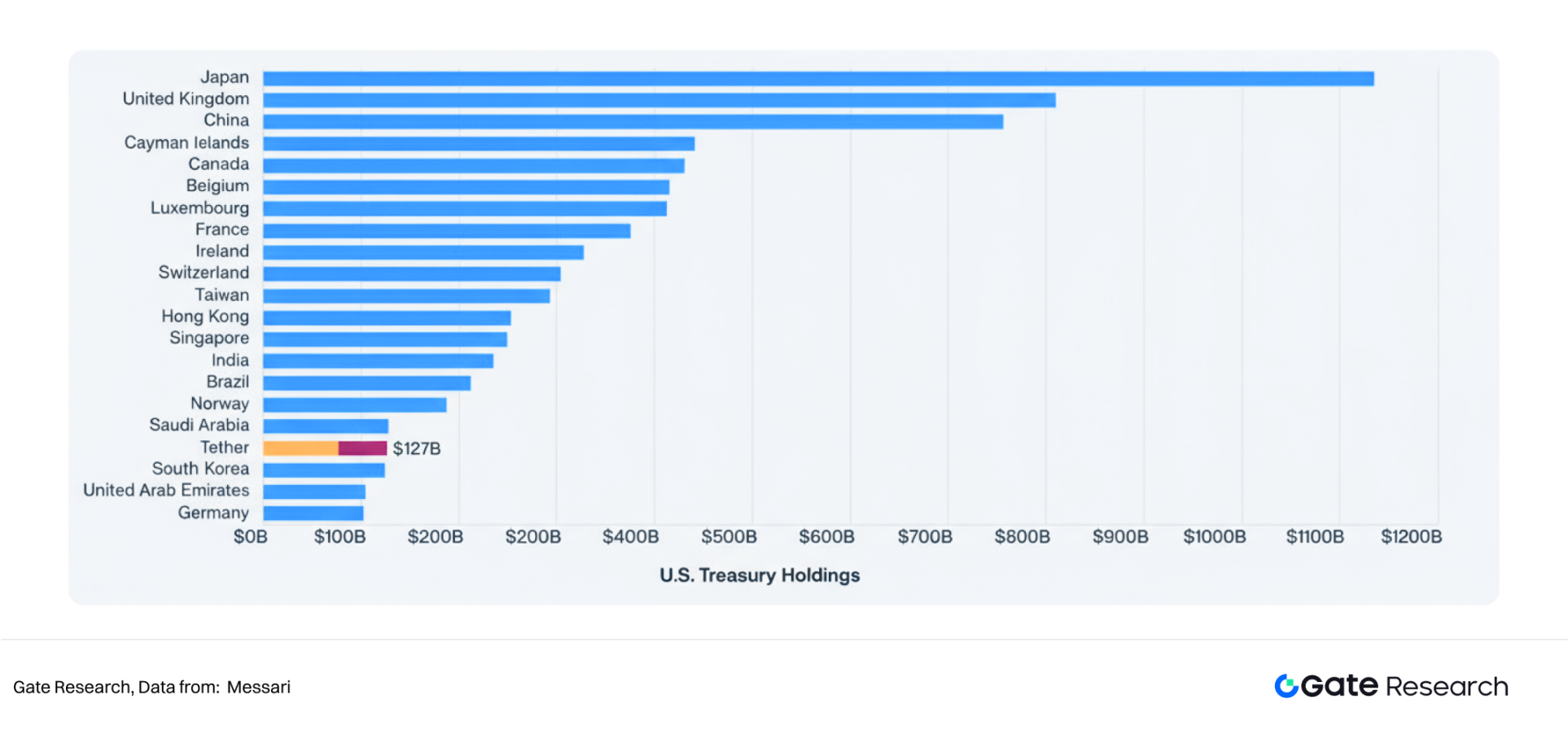 ● 资本与企业级应用爆发:Stripe 通过收购稳定币基础设施公司 Bridge 切入赛道;Circle 上市后股价飙升七倍;Tether 成为美债投资排名前二十的机构,持仓超越部分主权国家。