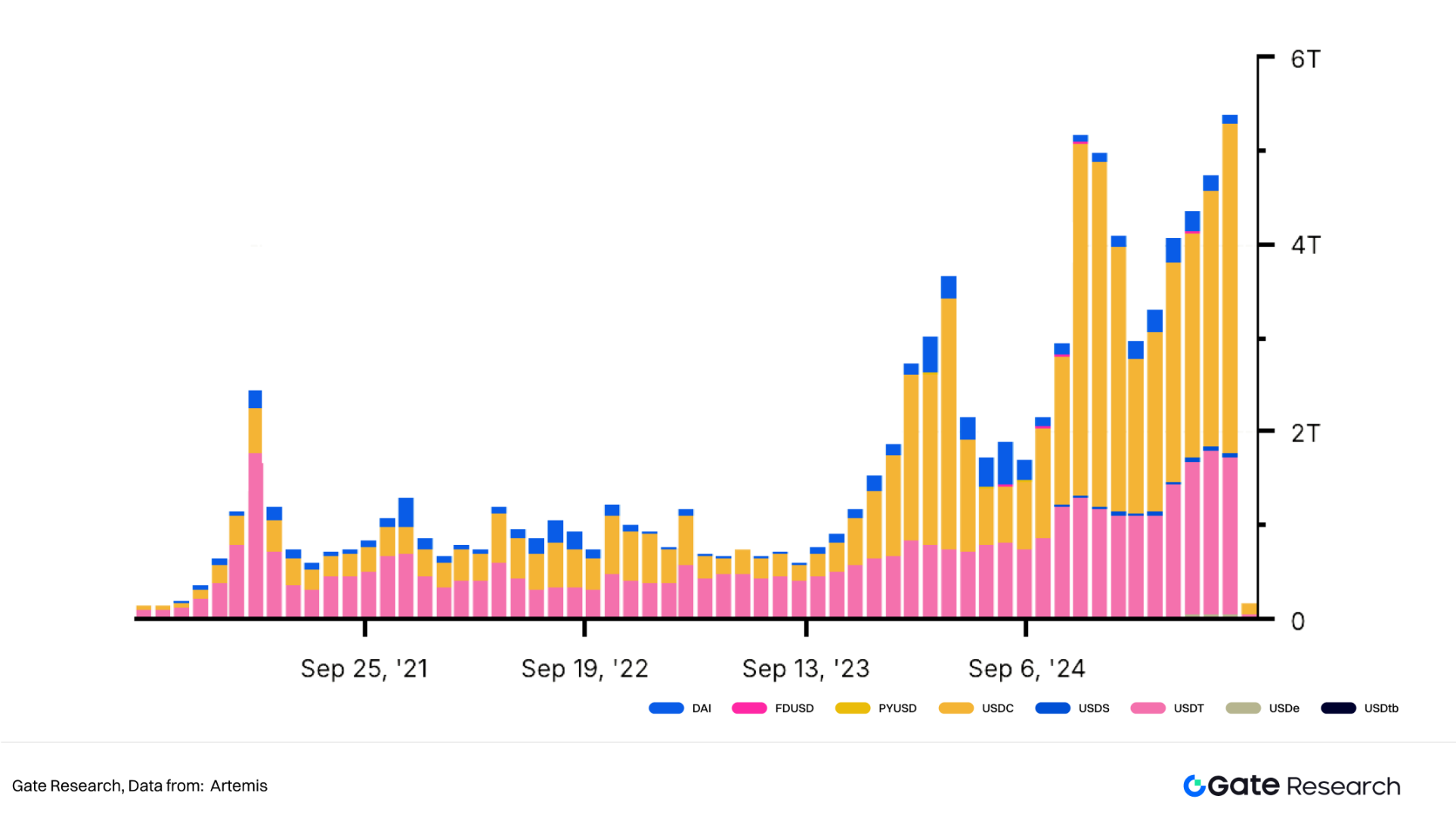 ● Stripe 收购了稳定币支付公司 Bridge,并与 Paxos 合作支持稳定币支付,加速了其在数字支付领域的扩张。