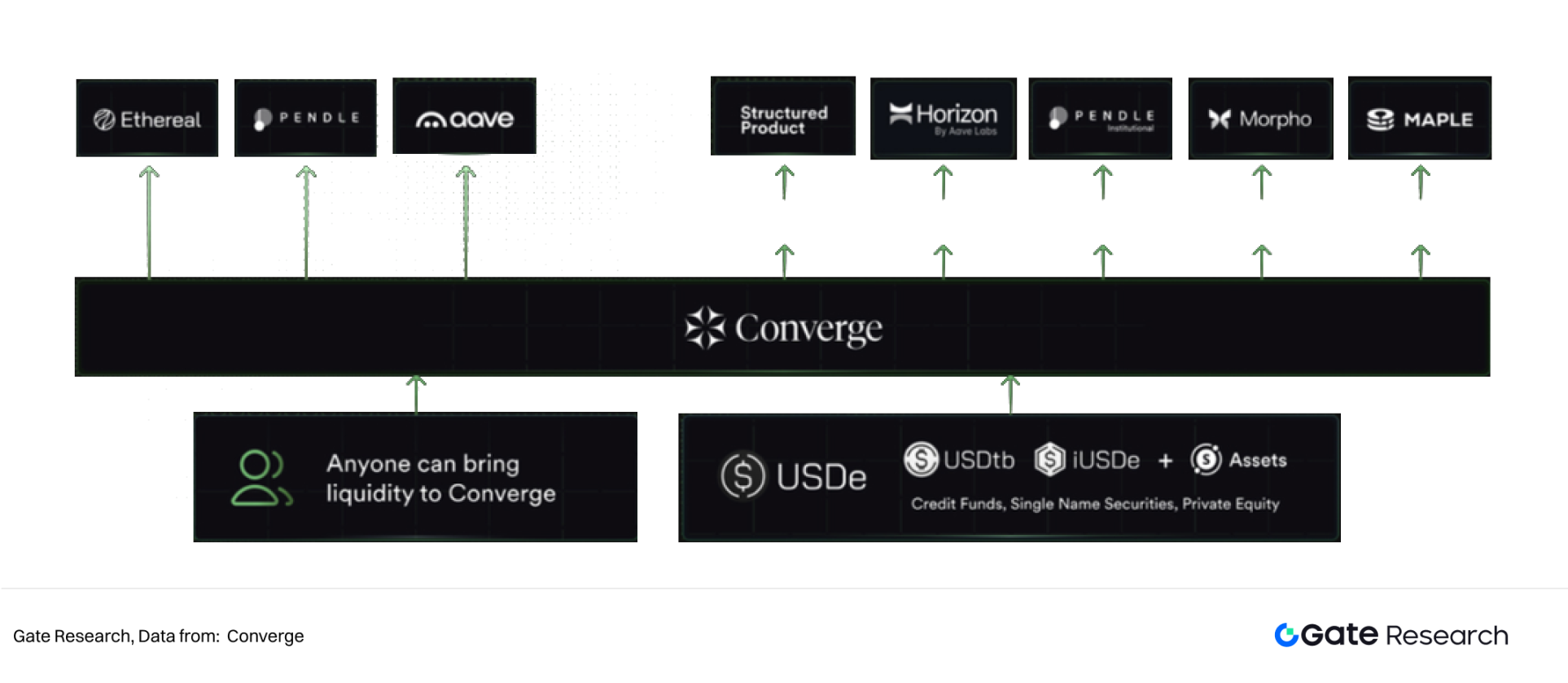 Converge 由 RWA 代币化领导者 Securitize 与 DeFi 协议 Ethena 联合推出。Securitize 已累计发行超过 200 亿美元的链上证券,合作对象包括 Apollo、贝莱德、KKR 等;Ethena 通过 Delta 对冲生成的 USDe 管理资产规模超过 60 亿美元,代表着 DeFi 创新的前沿。Converge 的愿景是成为传统金融与数字美元的机构级结算层。