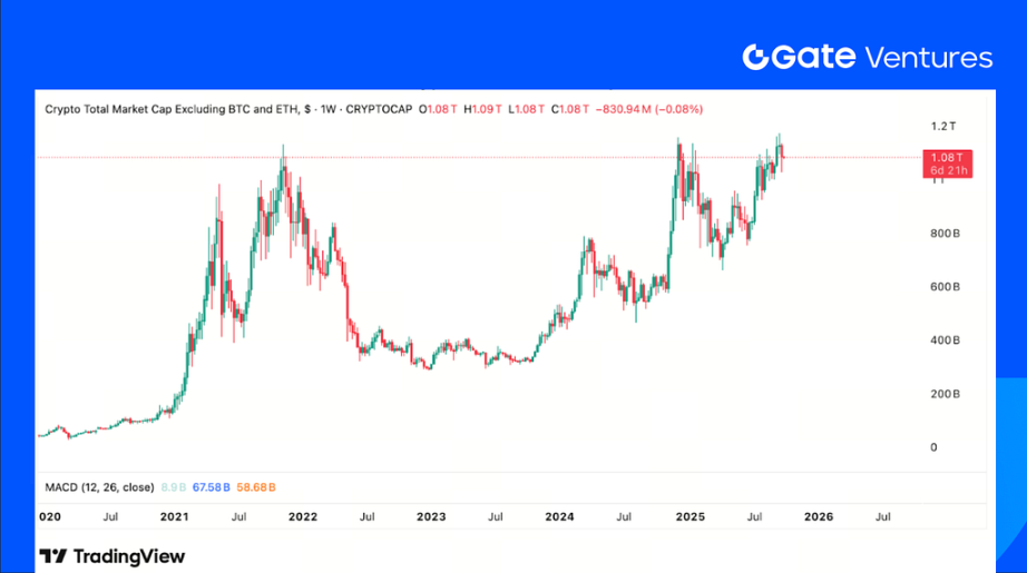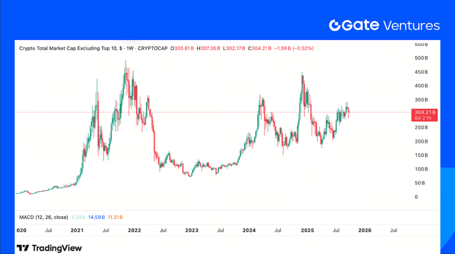 The broader crypto market slipped 3.6% over the week, with losses outside of BTC and ETH widening to 4%. The altcoin market excluding the top 10 dropped 3.94%, weighed down by ETH’s weak performance and effectively quashing the recent “altcoin season” hype.