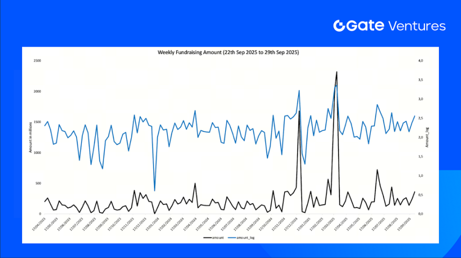 Total weekly fundraising rose to $364M for the 4th week of Sep-2025, an increase of +51% compared to the week prior. Weekly fundraising in the previous week was up +63% year over year for the same period.