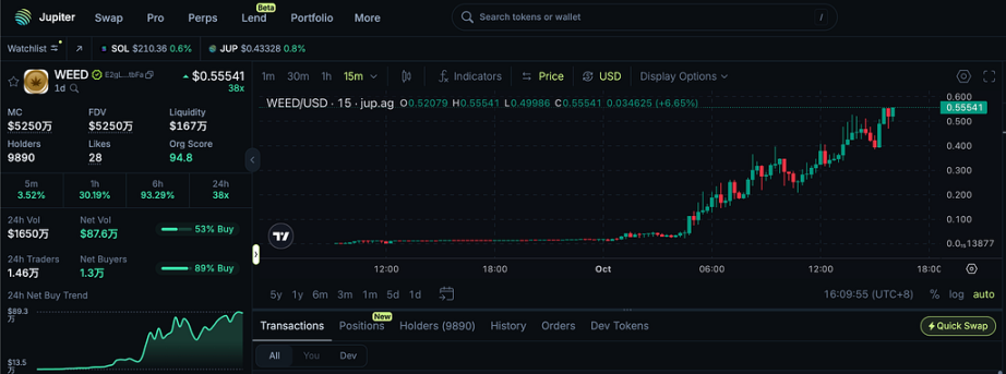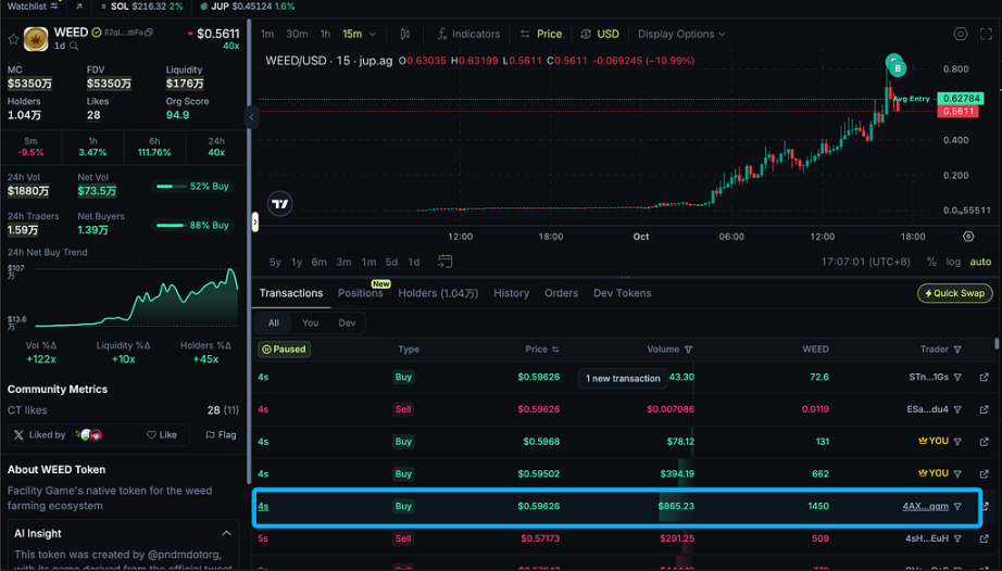 现在大家都在买 weed 代币冲升级,所以代币价格一下子冲很高,估计 1 天后代币会趋于平稳。不过还是要做好归零准备。