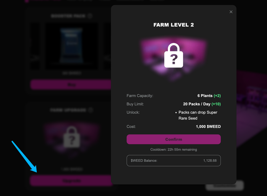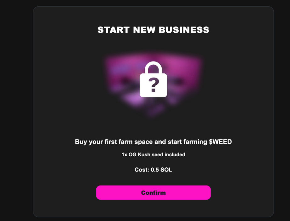 这种事是购买 Mystery Seed Pack,一包 300 WEED(成本 $165),初始地块可以放 4 包Mystery Seed Pack;