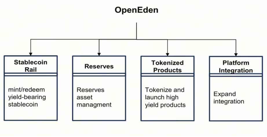 OpenEden operates a regulated platform for tokenized RWAs including stablecoins and tokenized U.S. Treasuries, enabling primary-market, real-time minting and redemption of a yield-bearing dollar. Its architecture is built around several core components:
