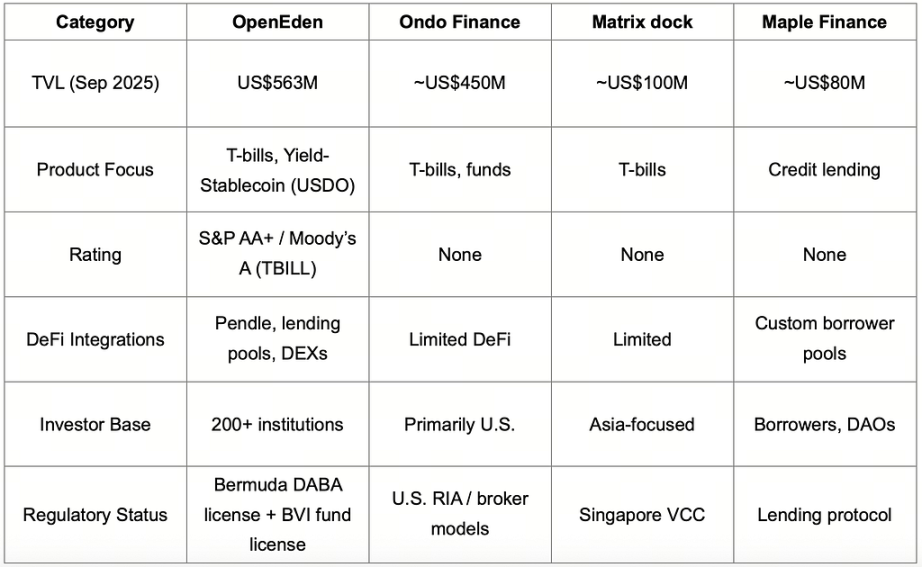 While several players are competing to tokenize Treasuries and money-market funds, OpenEden has carved out a distinct advantage across scale, credibility, and DeFi utility.