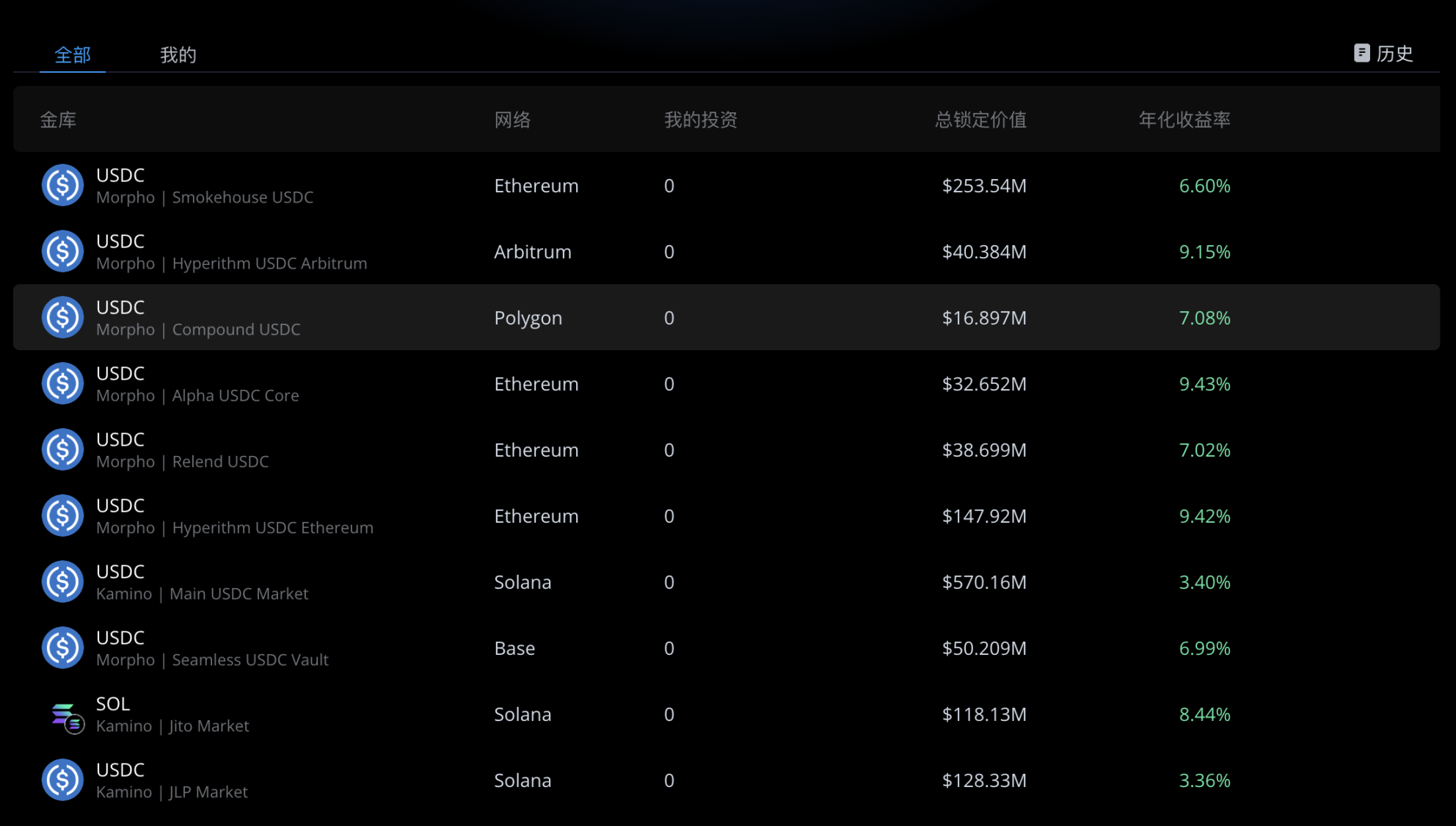 这些理财来自值得信赖的 DeFi 协议(如 Morpho 与 Kamino)。但一如既往,我们鼓励用户在投资前自行研究(DYOR)。