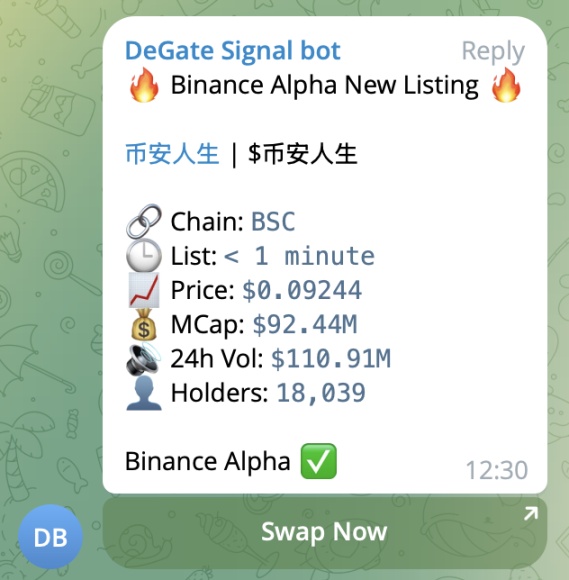 同时,DeGate Meme TG 社群新增了 “Binance Alpha 新币信号” ,让用户在 Meme Signals 中第一时间跟踪 Binance 上新项目的热度。