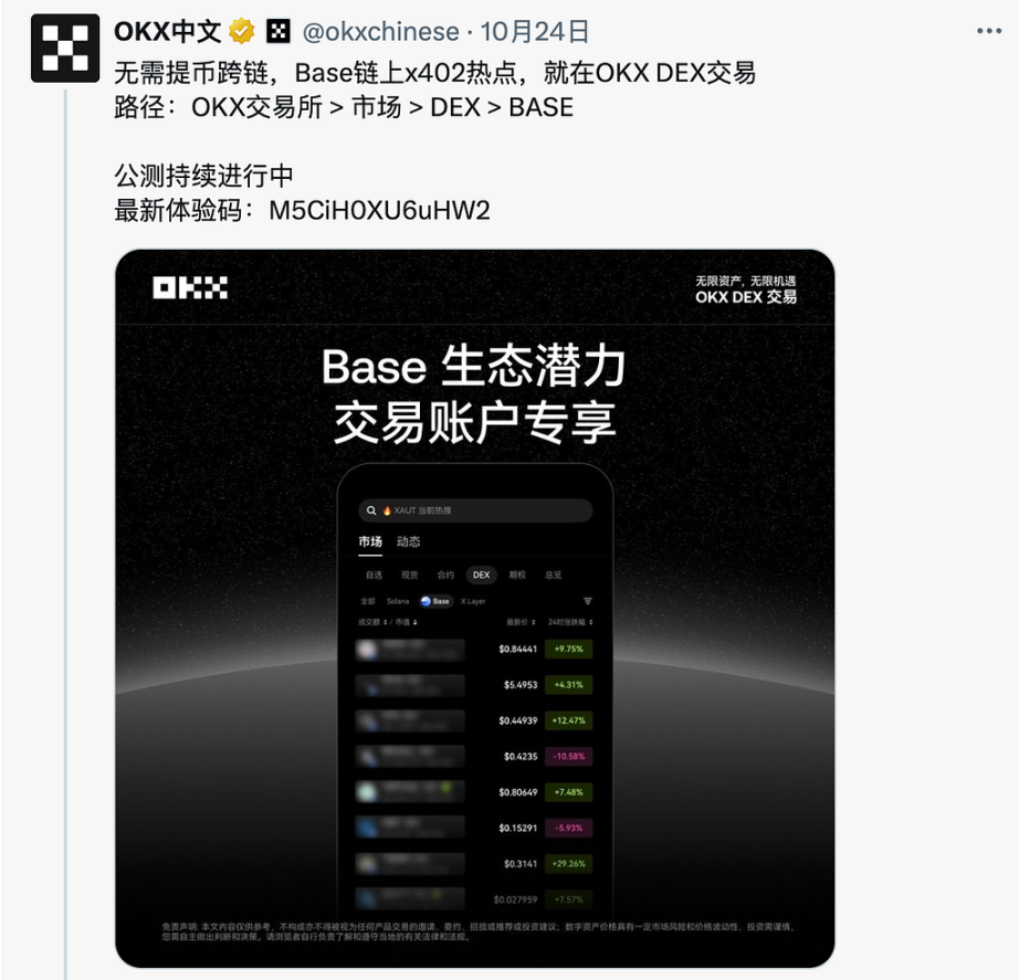 只有当 x402 上线 OKX 后才能交易,如果要交易上面几个龙头代币,在 uniswap 就可以交易。