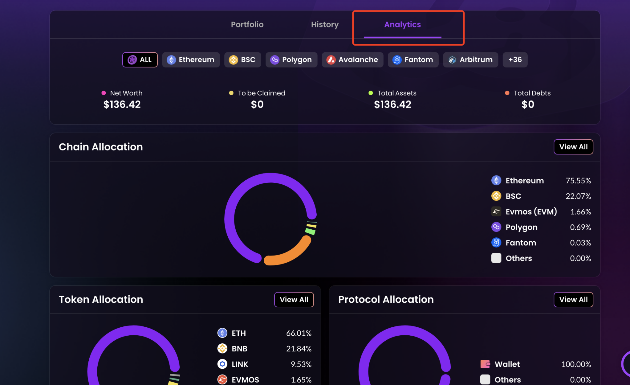 各链 Token 占比情况(有余额的),一目了然,很好,快去看看自己各链上的代币吧,说不定忘记了一顿大大的猪脚饭呢。