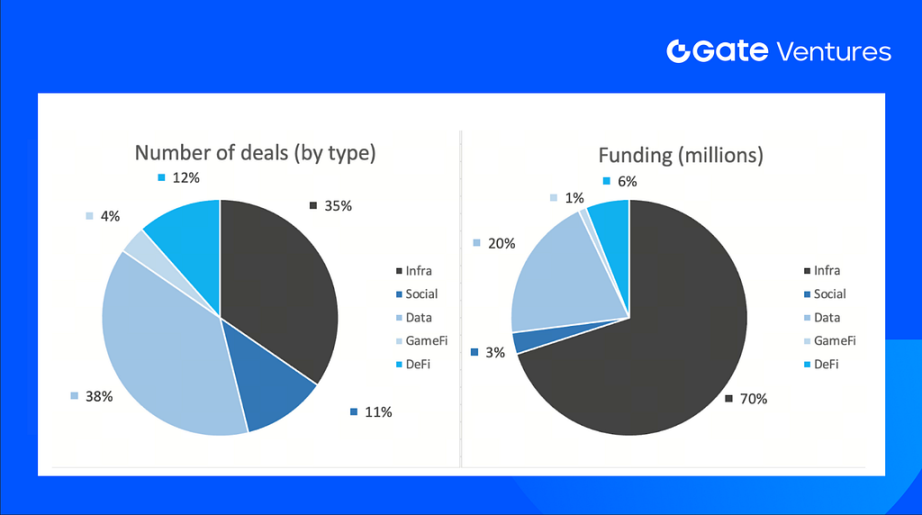 The number of deals closed in the previous week was 26, with Data having 10 deals, representing 38% for each sector of the total number of deals. Meanwhile, Infra had 9 (35%), Social had 3 (12%), Gamefi had 1 (4%) and DeFi had 3 (12%) deals.