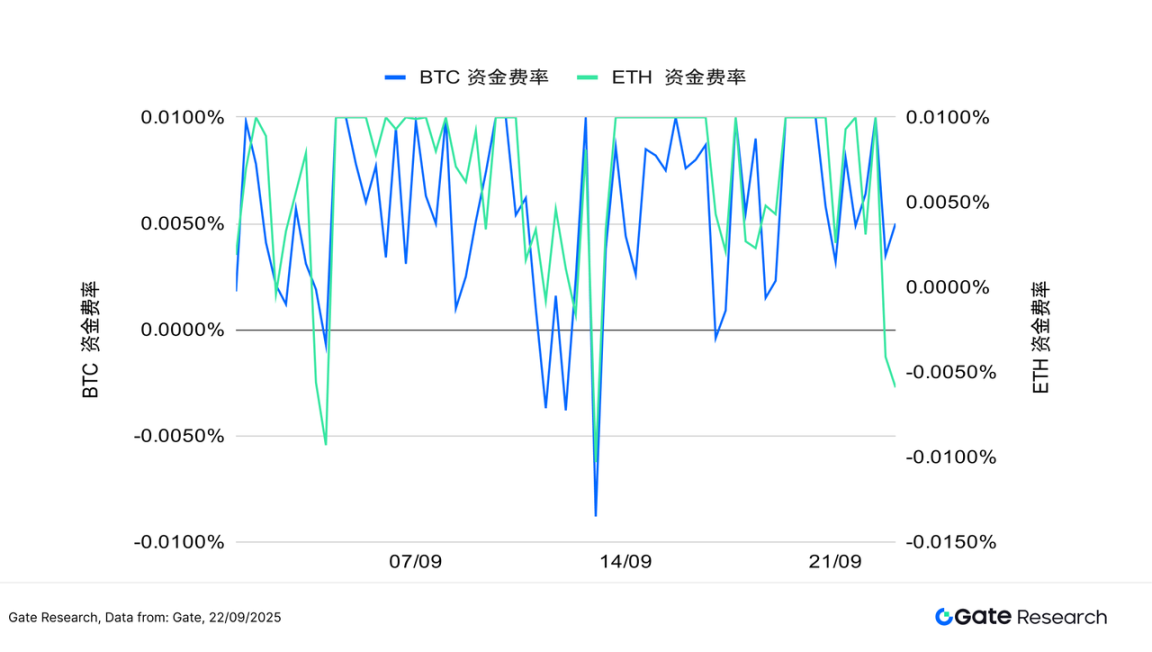图六:BTC 与 ETH 资金费率大多维持正值,市场偏多但多头动能仍显温和